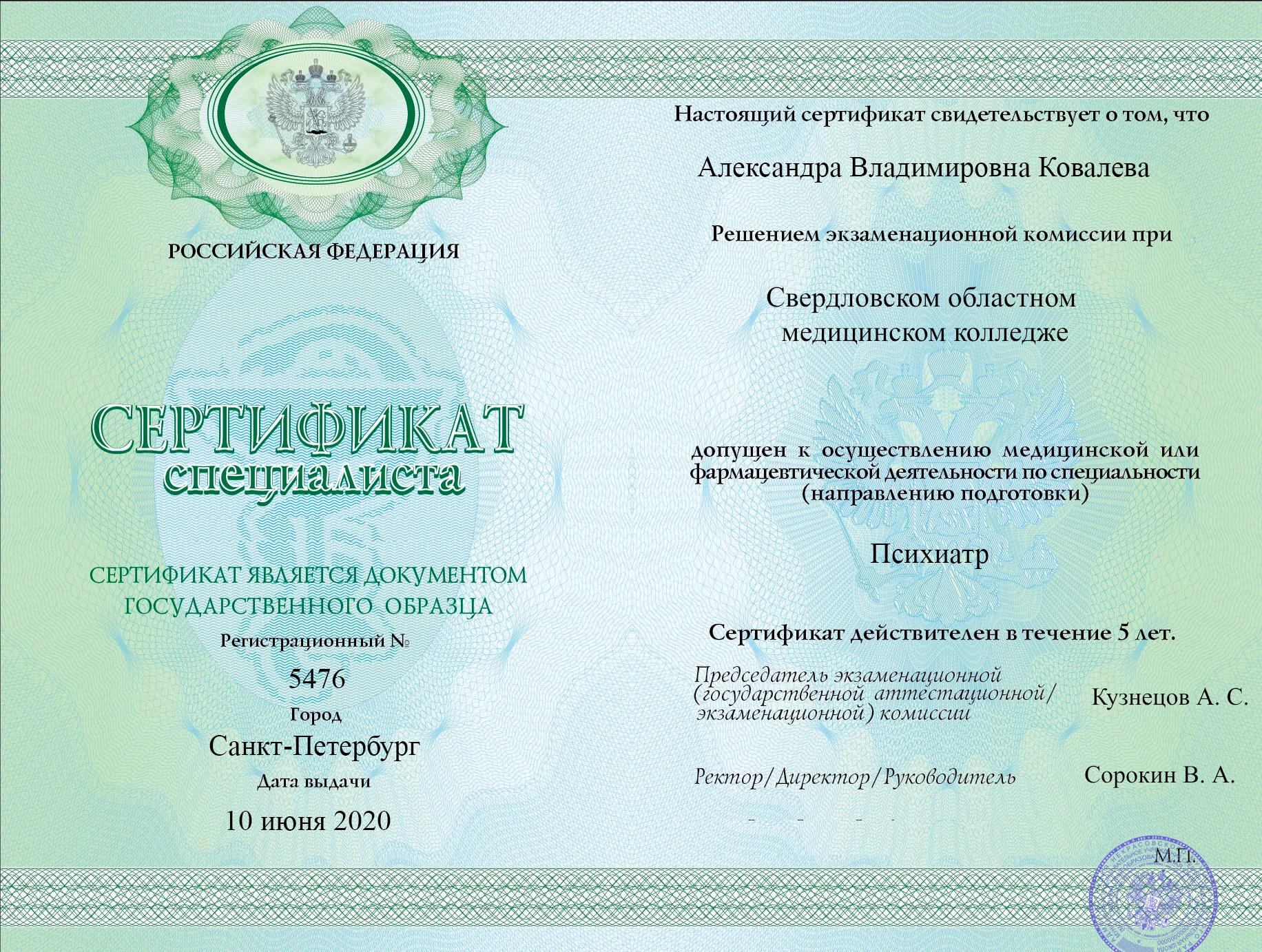 Должность: Психиатр, врач-общей практики, кандидат наук1